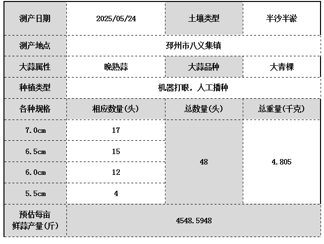 2025'邳州西部大蒜測(cè)產(chǎn)記錄