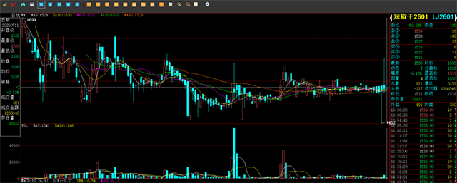 當現(xiàn)貨市場還陷在僵局中,電子盤的反應卻總能快一步,華夏國際辣椒干電子盤的LJ2601合約在七月上旬就有了動作:盤面跌至1452點,精準釋放了市場對“南澇北旱”的擔憂。